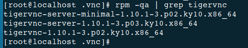 安装完后使用rpm -qa | grep tigervnc-server命令查看是否安装成功,如下: