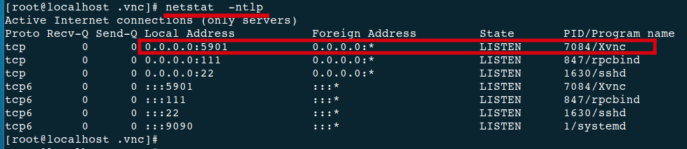 netstat -ntlp查看是否有在监听5901端口,如下图所示为正常: